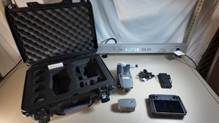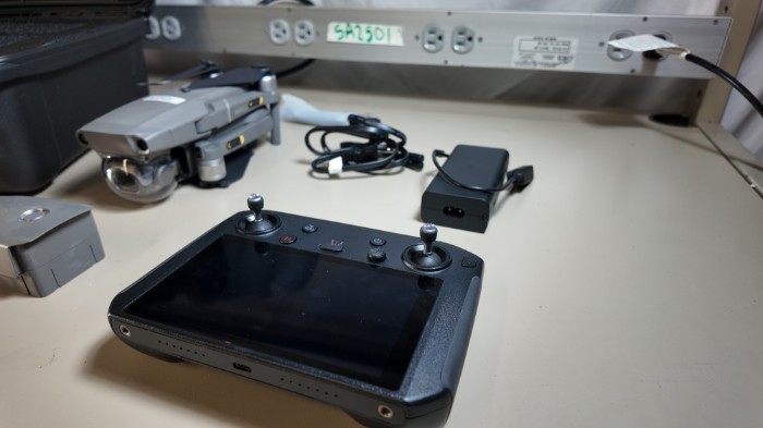DJI Mavic 2 Pro drone kit in excellent condition. Includes drone, DJI Smart Controller with built-in display, intelligent flight battery, charger, cables, manuals, and protective hard carrying case with custom foam insert.