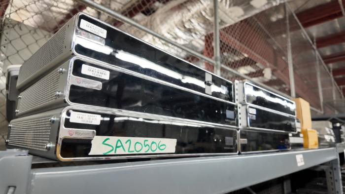 • Polycom RealPresence Group 700 units – Qty: 6 • Polycom HDX 7000 units – Qty: 2 • LifeSize Team 220 system – Qty: 1 • Box of Polycom P990 and P10 power supplies