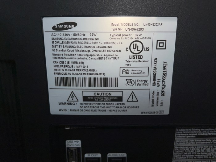 Samsung 40” UN40H5203AF TV w/ Cart