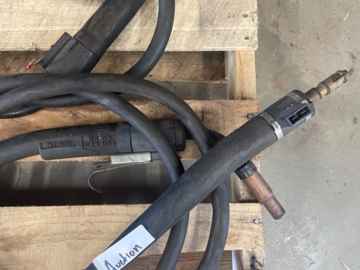 Lot of (1) Pallet of Assorted Wire-Feed Welding Guns May include but not necessarily Tweco MiG-Gun and Union Carbide (Brands and Types)