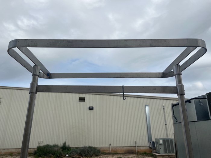 ABCO Prep Table w/ Overhead Pan Storage - Note: Item is being stored outdoors
