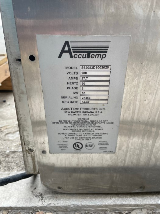 Dual AccuTemp Steamer (Lot of 2 Stacked Units) Includes: - (1) AccuTemp Model: SNHB-20-00 - (1) AccuTemp Model: S62083D1003020