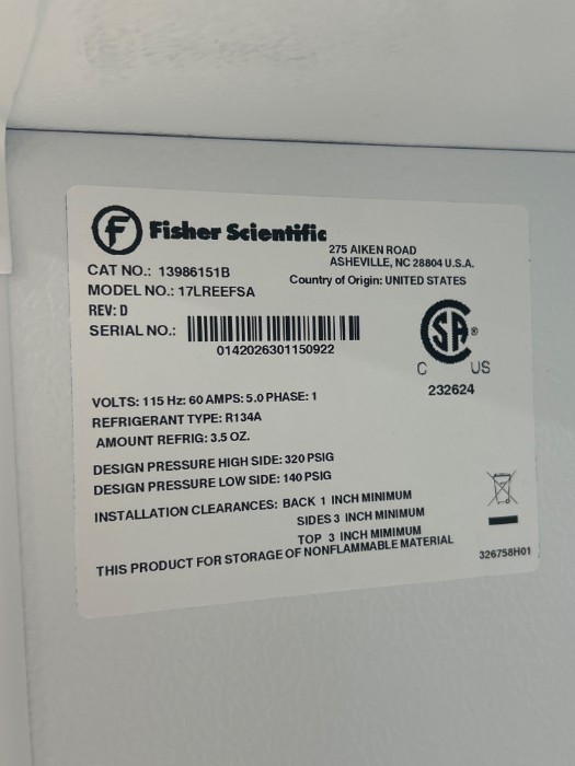 Fisher Scientific Isotemp Refrigerator Model 17LREEFSA