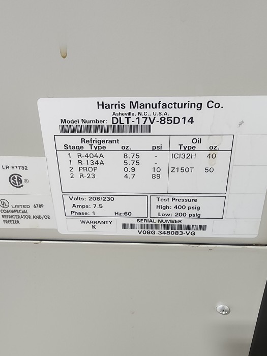 Harris Custom Deluxe Ultra-Low Temperature Freezer