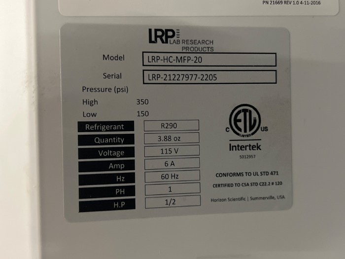 LRP Model: LRP-HC-MFP-20 Upright Laboratory Refrigerator