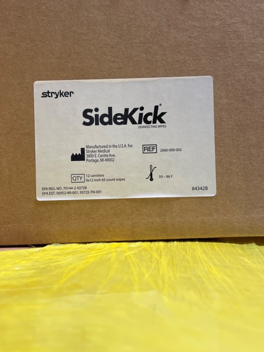 (1) PALLET OF STRYKER SIDEKICK WIPES - 12 Boxes each case - 44 Case in pallet