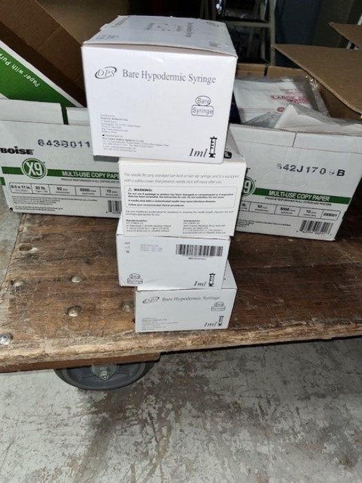 (2) Boxes of Miscellaneous Medical Supplies. Flatbed cart not included.