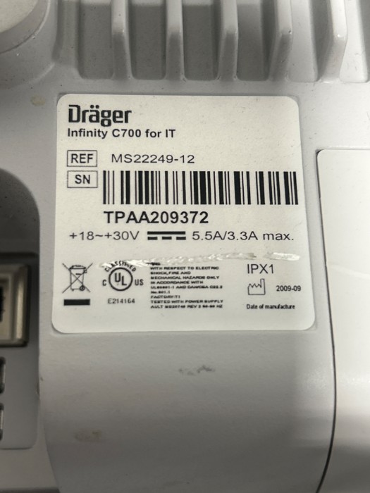 Dräger Infinity C700 Screen (Lot#: H43357 - ID: z4ef359y)
