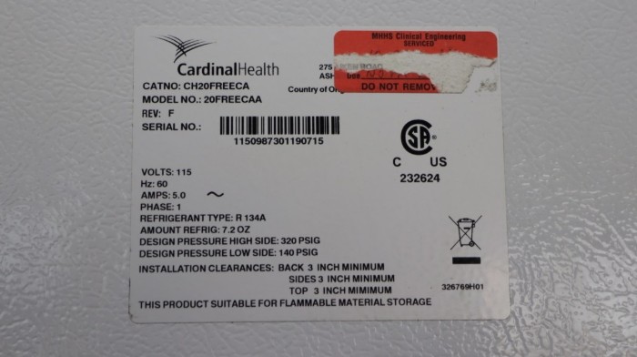 Cardinal Health 20FREECAA Laboratory Refrigerator