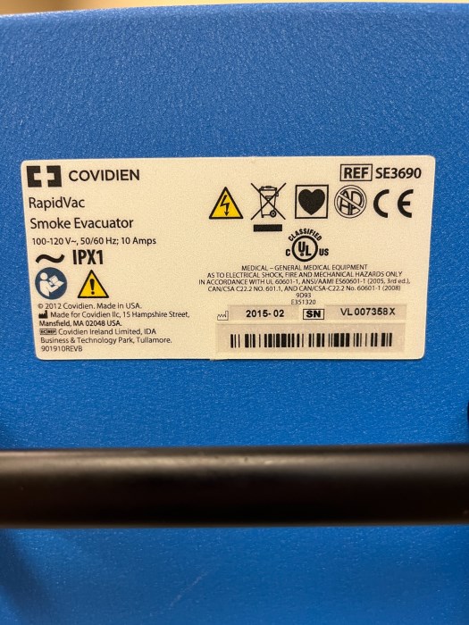 Covidien RapidVac Smoke Evacuator