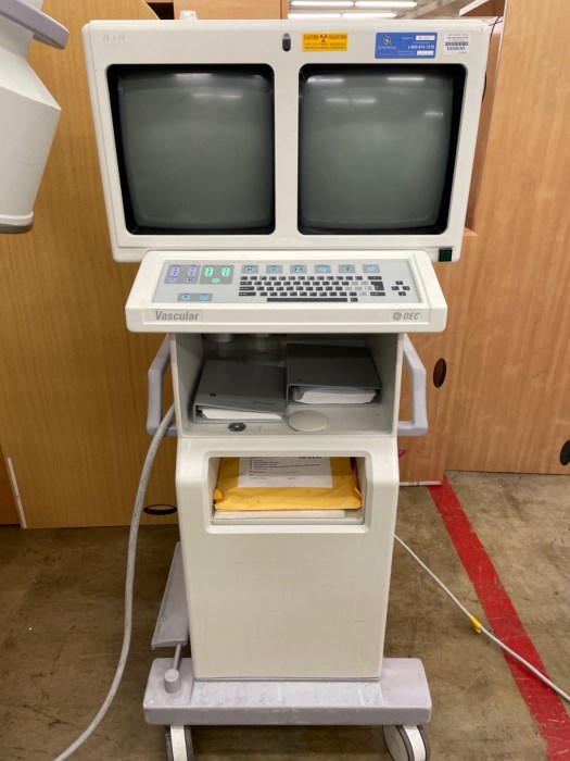 GE OEC 9800 Vascular mobile C-Arm, Image Intensifier, and pedal system (Powered on at time of inspection)