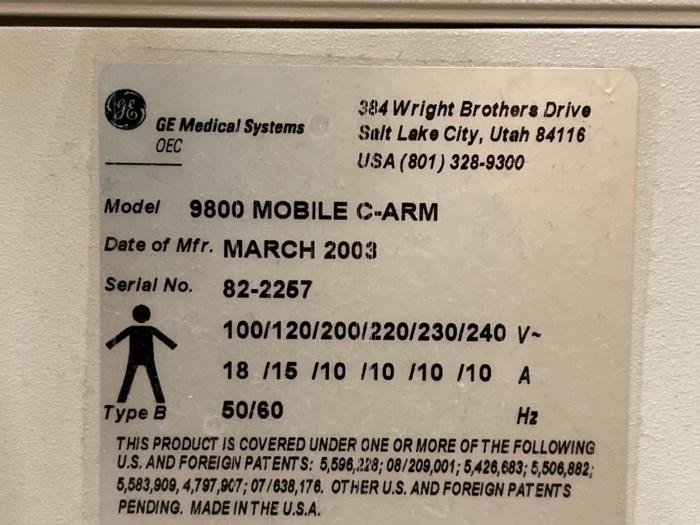 GE OEC Plus C-Arm System GE OEC 9800