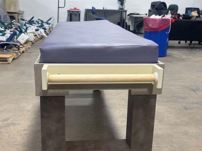 Medical exam table on wheels