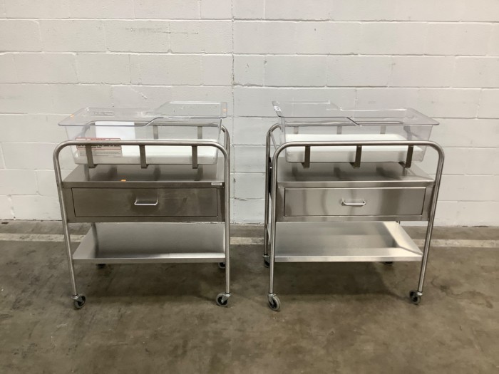 Stainless Steel Hospital Infant Bassinet with Drawer(Lot of 2)
