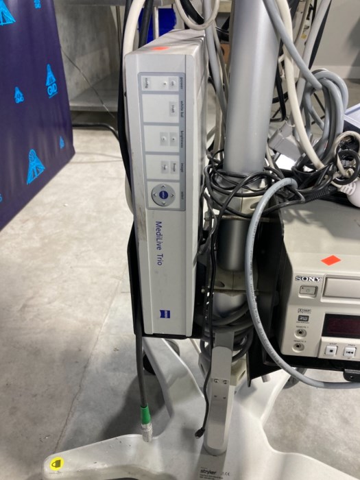 Stryker Flat panel roll stand pole with Sony electronic accessories