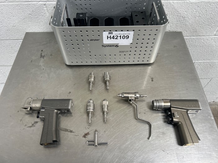 Stryker System 6 Rotary 6205 and Sagittal 6208 Power Drills with Attachments and Sterilization Case