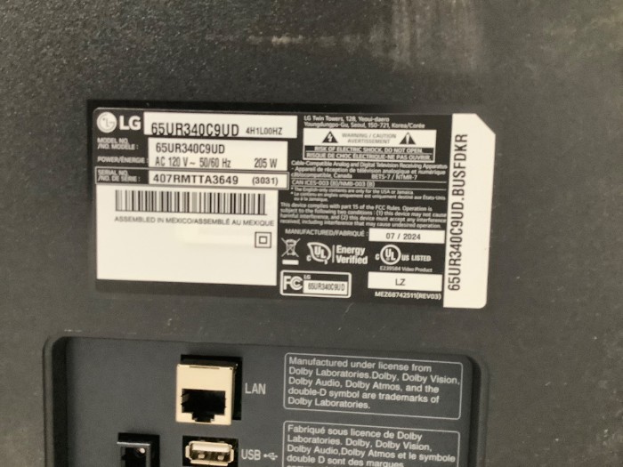 LG 65” Commercial Tv + Samsung HDTV Monitor 27” (Lot#: H42122 - ID: y02n7vmz)