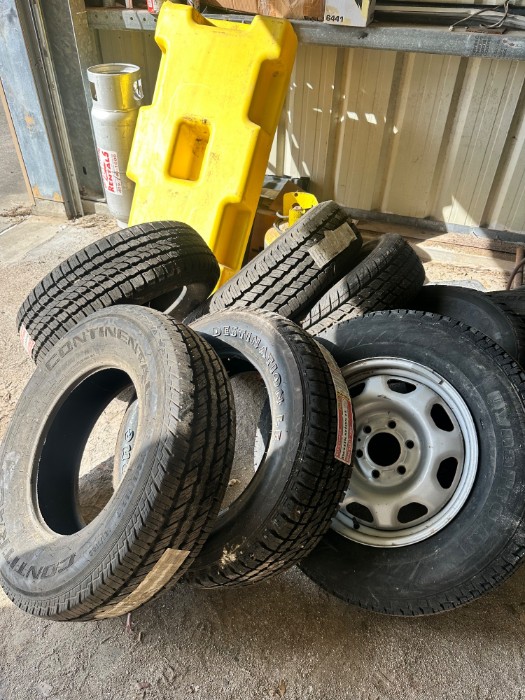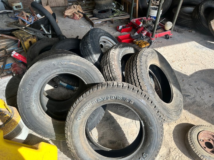 Assorted Used/New Tires Different Sizes Old and New Tires different sizes included + some other assorted equipment