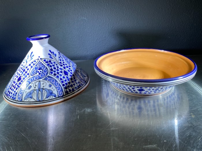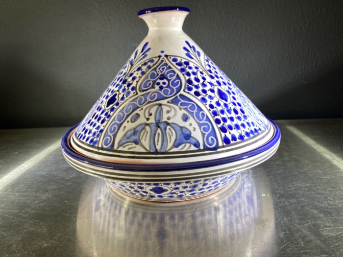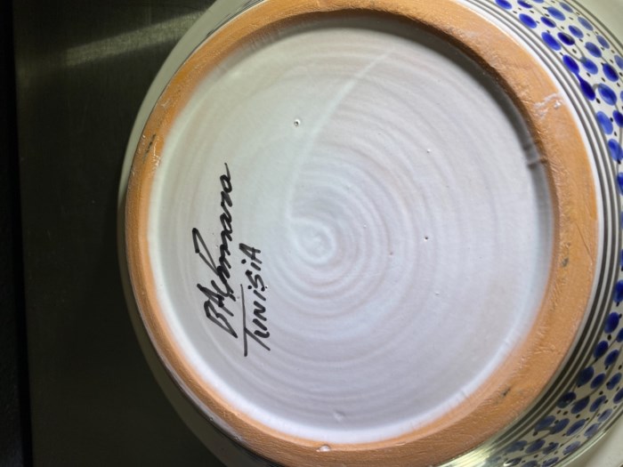 Tagine signed hand painted clay pottery from Tunisia Africa.