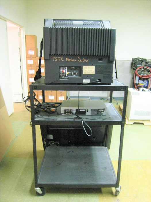 (1) Flat Screen TV (1) VCR (1) Media Cart (1) Box TV
