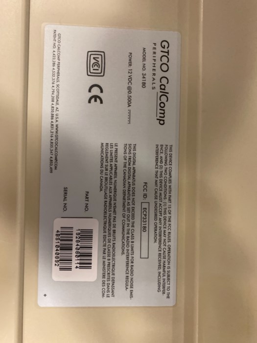 (1) GTCO CalComp Model 34180