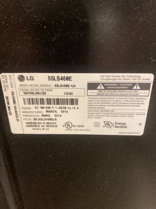 (1) LG 55” Flat Screen TV