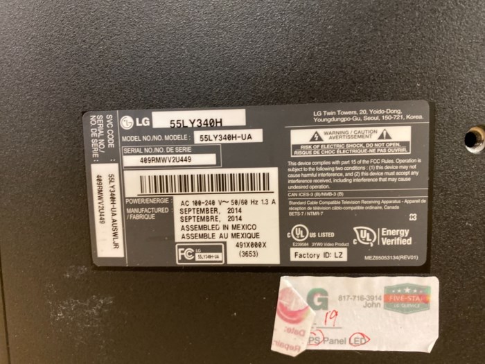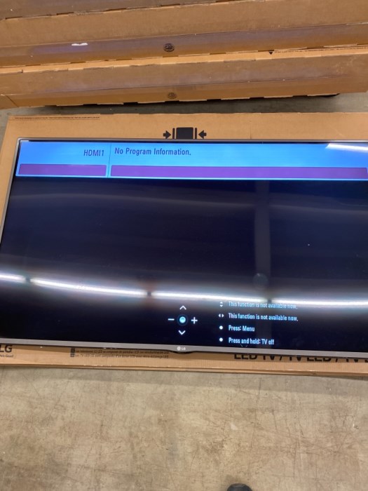 LG 55 inch flatscreen TV. TV powered up at inspection