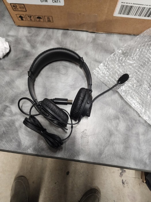Assorted box of hi-fi USB headphones with microphones
