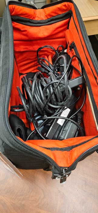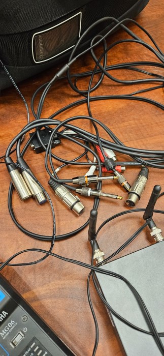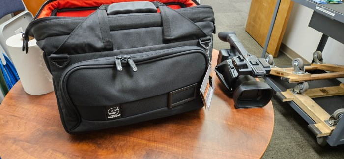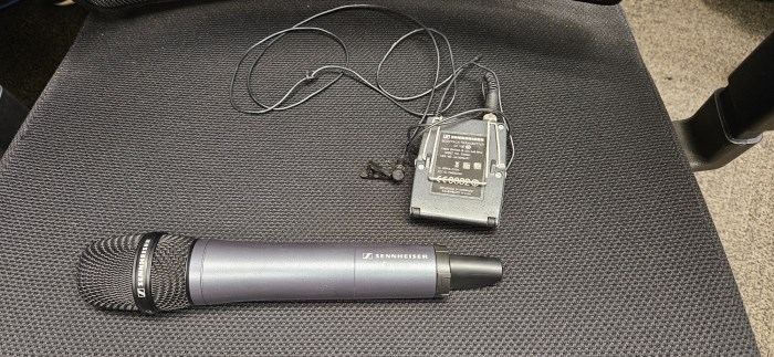 Audio visual equipment, (1) Panasonic AVVCAM 3mos, (2) Sennheiser ew100 G3 receiver, (1) Yamaha MG 06 Mixing Console, (1) Sachtler equipment bag, (1) Sennheiser microphone, (1) Sennheiser bodypack transmitter.