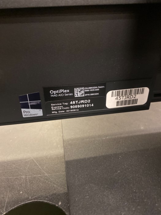 Dell all in one computer OptiPlex 7440 AIO series, Hard drive has been removed