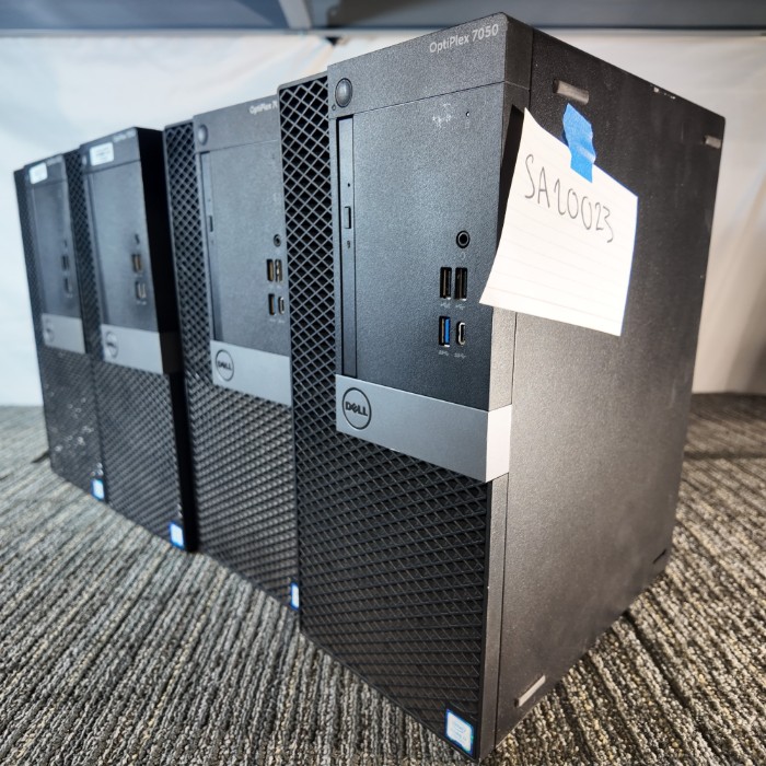 (4) Dell OptiPlex 7050 desktop computers • Intel Core i7 (7th Gen) – x4 (per labeling/identification) • Form factor: mixed (see photos) • Untested / working condition unknown (no power-on testing performed) • RAM / storage / OS not verified; components may be missing/removed • No accessories included (no monitors, keyboards, mice, or power cords) • Cosmetic wear from normal use/storage (see photos) Sold AS-IS / WHERE-IS. No returns.
