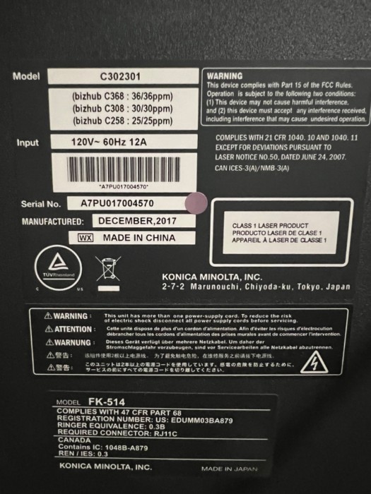 Konica Minolta Bizhub C368 Copier