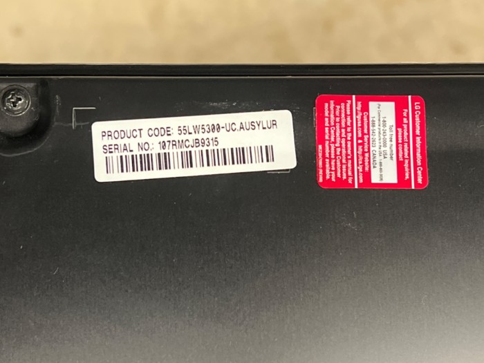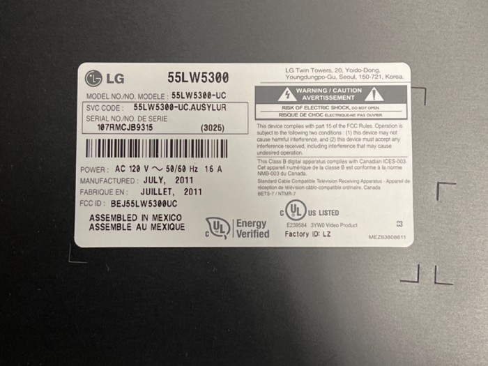 LG Model: 55LW5300 Television - Powers on, but does not include power cords or connectors unless they are internal.