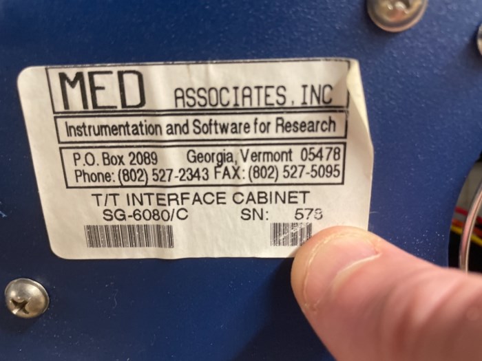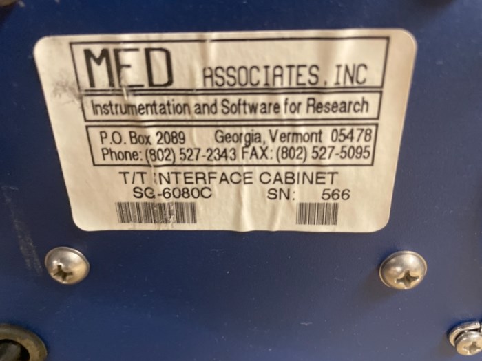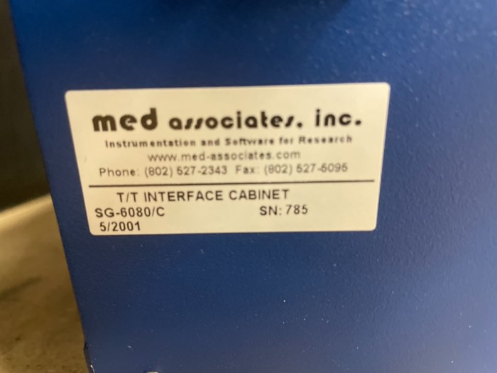 Lot of (3) Med Associates T/T Interface Cabinets Lot Includes: - S/N: 578 - S/N: 566 - S/N: 785