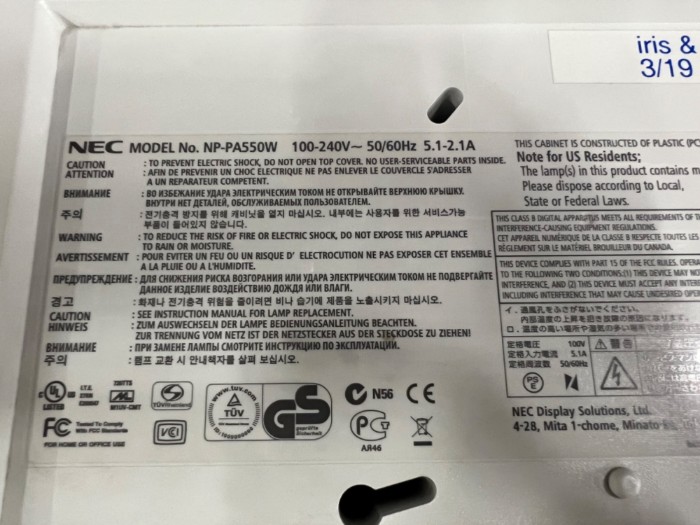 NEC P550W Projector