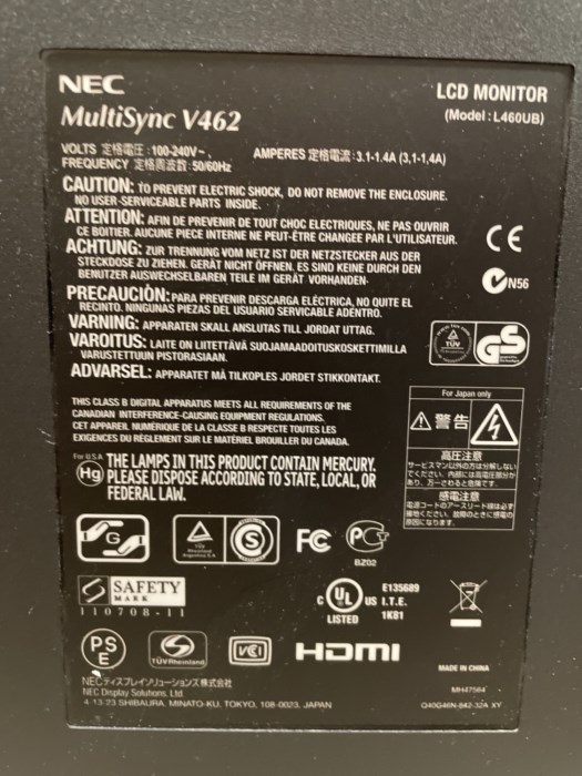 NECMultiSync V462 LCD Monitor - Model: L460UB