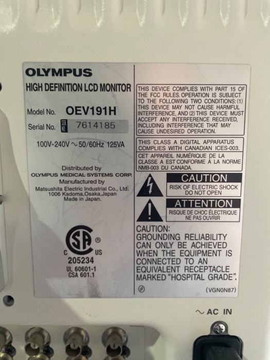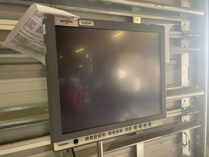 Olympus OEV19H LCD Monitor (Mounted on Rolling Stand) - Powered on at time of auction however was not able to test.