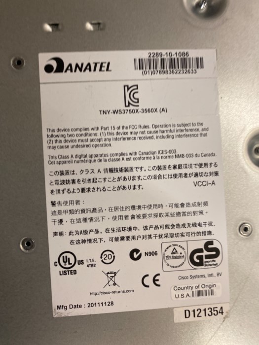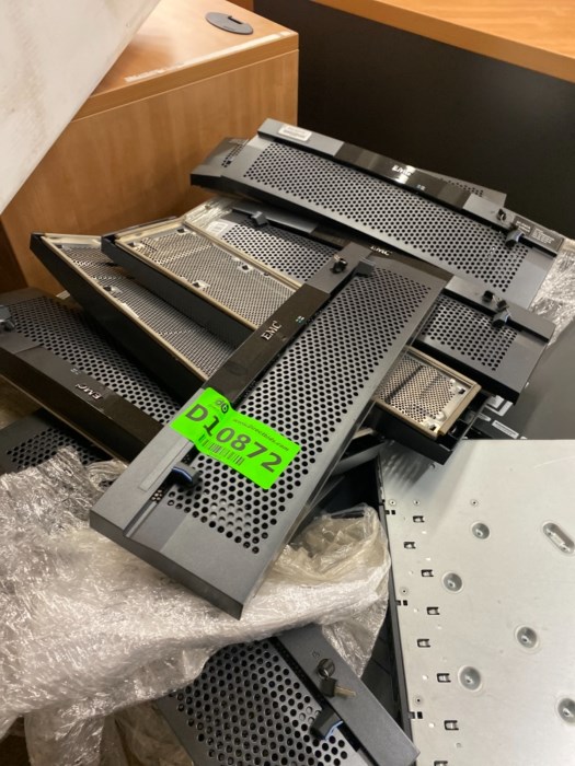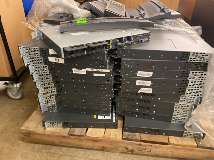 Pallet filled with switches by Cisco and covers by EMC