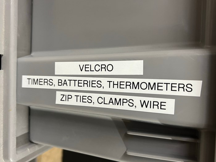 Plastic tote Containers w/ Assorted Equipment (Lot of 6)