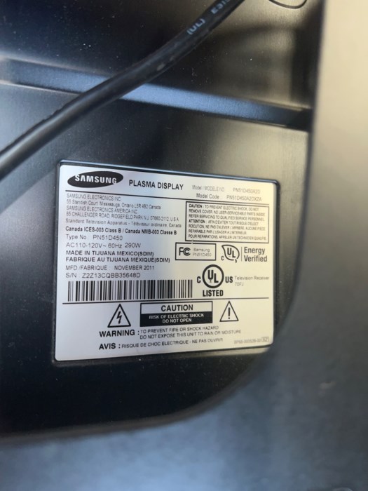Samsung Model: PN51D450A2D Plasma Display