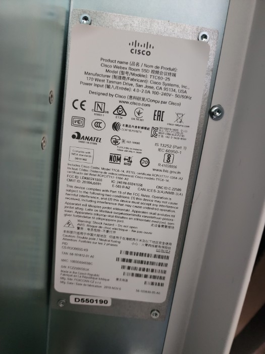 Webex Webex Room 55 TTC60-25 Video Conference Equipment
