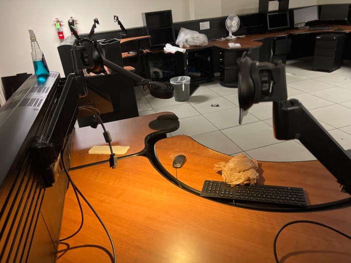 Police department dispatch command center furniture and monitors (does not include tvs on wall)