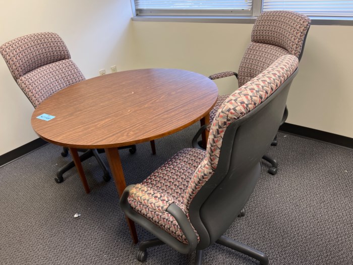 Round office table and 3 High end office chairs