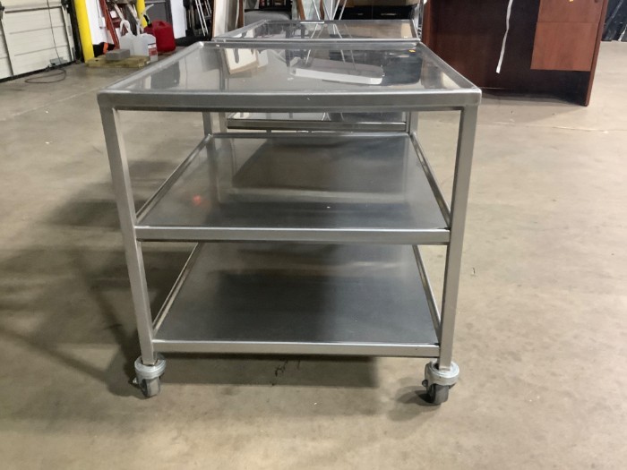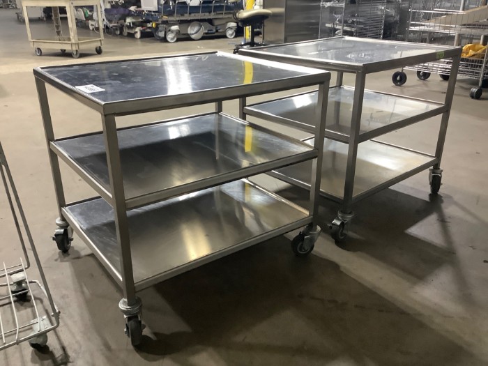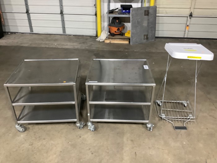 3-tier Stainless Steel Utility Cart(Lot of 2) + Hamper Stand with a foot pedal.