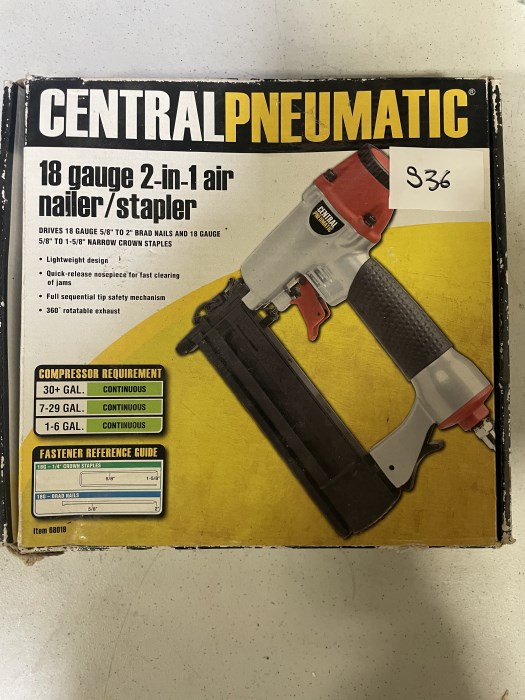 Central Pneumatic 18 Gauge 2-in1 Air Nailer/Stapler - In-Original-Box