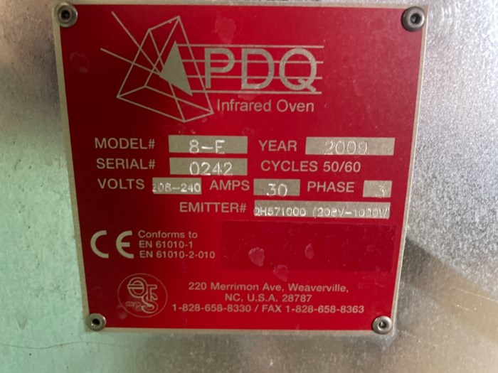 PDQ Model 8-E Infrared Oven