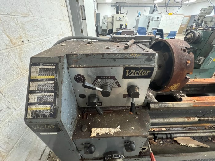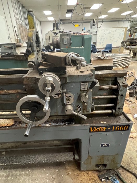 Victor 1660 Industrial Grade Engine Lathe Note: Item is located on the first floor of the building with a single bay door at street level. There is no equipment at the facility to help with removal of the equipment. The last two photos references the room the equipment is located and the bay door in that room.