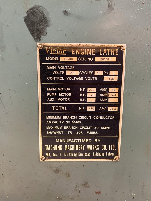 Victor 1660G Industrial Grade Engine Lathe Note: Item is located on the first floor of the building with a single bay door at street level. There is no equipment at the facility to help with removal of the equipment. The last two photos references the room the equipment is located and the bay door in that room.