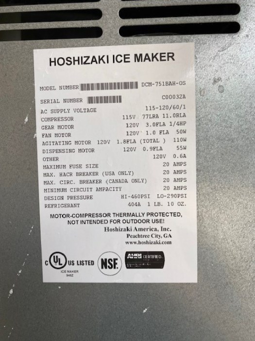(1) Hoshizaki DCM-751BAH-OS Ice Machine (Cart Not Included) (Item VERY HEAVY buyer will need to provide own equipment when picking up)