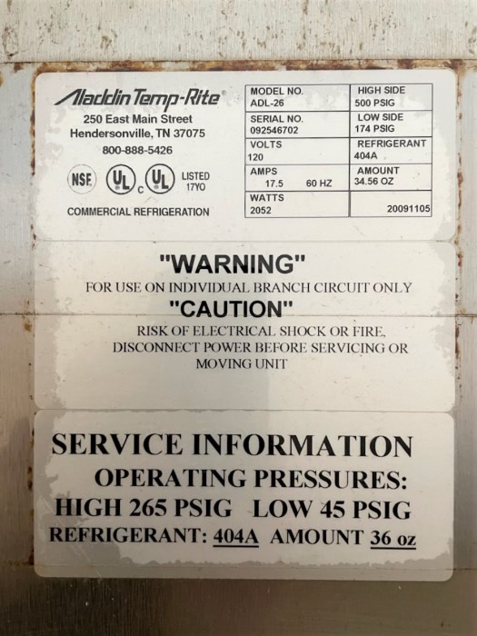 Alladin Temp Rite ADL-26 High Performance Air Curtain Refrigerator